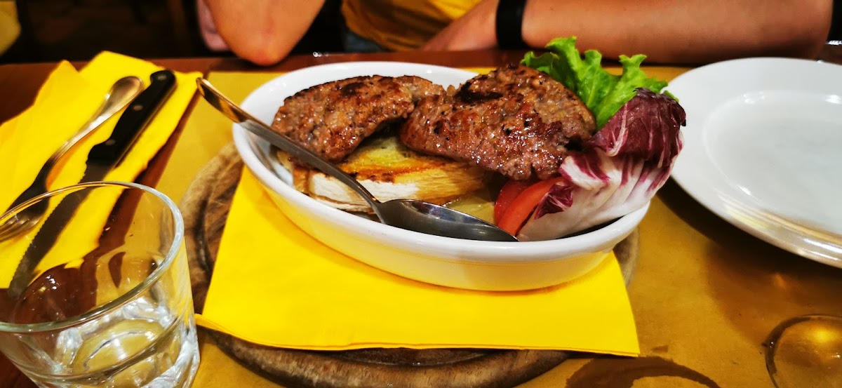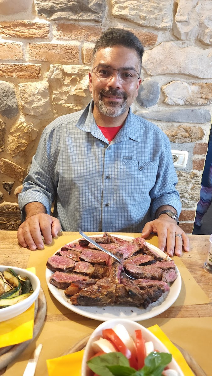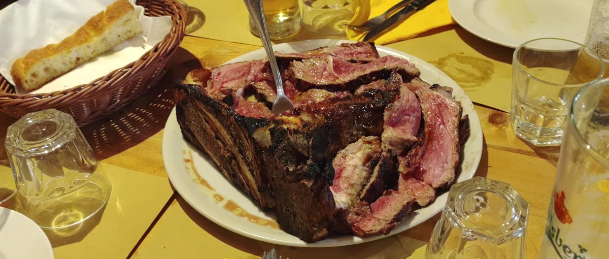 This is my favourite restaurant in my Italy trip. I have to write this review so everyone knows to visit this place! We were lucky to get a dinner reservation as we passed by at noon on the same day. But walk in is still allowed. The bruschetta is the best authentic one we tasted in Italy. The tomato is generous, fresh, sweet and the bread is clearly brushed with garlic generously too! Please try them. We then got a florentine steak for 2. The charred flavour is divine. The steak looks red but does not taste raw or bloody. It was perfect. Since the restaurant is a cozy place, the steak stayed warm to taste throughout, making the dinner very consistent. Some other restaurant might serve outdoor steak which to us was not as good experience since a cold steak is not pleasant. We had sides of spinach and grilled vegetables which are delicious. You can feel love and home in every bite. I am not exaggerating. I really love this restaurant for treating food with so much respect! Plus, the price is justified especially with the steak, staff are nice and care about the way they serve food. Please, come visit them and you will not regret it. The house wine tasted good too and it was a generous glass! What more can I say! This restaurant makes me fall in love with Florence.